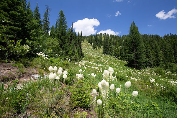 The Jewel Basin is an area of over 15,300 acres of mountains, valleys, forests and alpine lakes set apart exclusively for hiking, camping and fishing, motorized vehicles and horses are prohibited in the area and on the trails. The region includes more than 35 miles of hiking trails and over 27 named lakes. Jewel Basin lies within the Flathead National Forest between Kalispell and the Hungry Horse Reservoir.